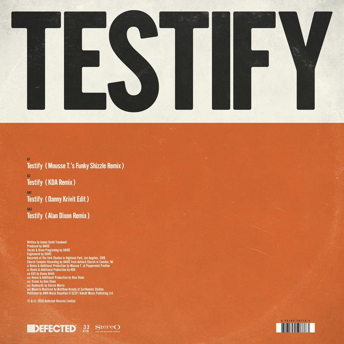 In times of trouble and uncertainty music can provide great relief for the soul, and DAVIE’s triumphant Defected debut ‘Testify’ does exactly that. A joyous introduction to the Brooklyn artist, this 12’’ remix package demonstrates an ability to strike the balance between classic and contemporary sounds seamlessly. Now, the record DAVIE himself describes as, “a dance song, not a gospel song,” gets four brand new remixes. Up first on the A side, Peppermint Jam boss Mousse T. plays to the gospel elements of the original, with deep, powerful chords and rhythmic claps, bringing a snapping groove to the cut. Next, London talent KDA goes for a clubbier sound, looping the vocal and raising the BPM. On the flip, undisputed master of the disco edit Danny Krivit delivers his sublime club-friendly version, extending the